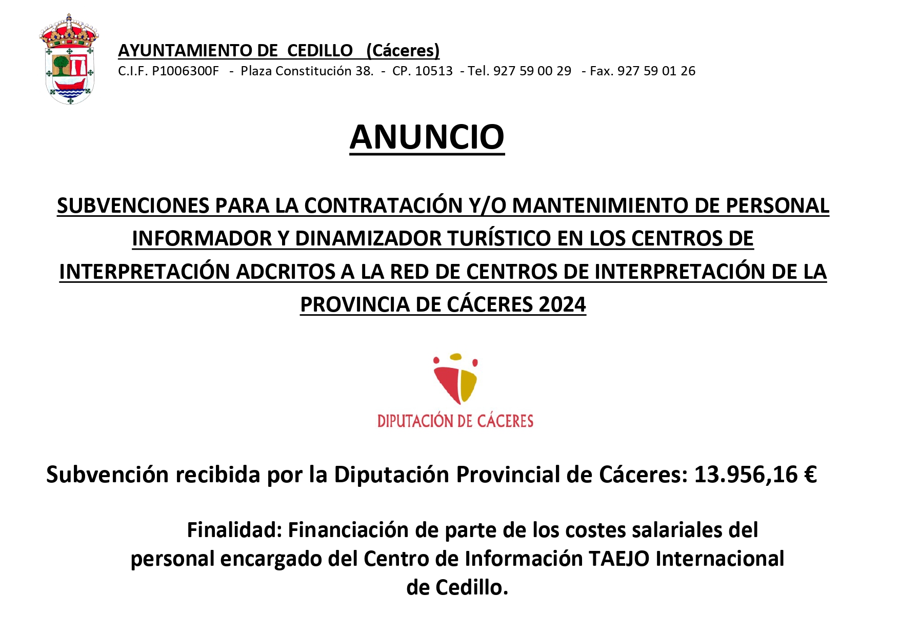 SUBVENCIÓN CONTRATACIÓN PERSONAL CENTROS DE INTERPRETACIÓN 2024